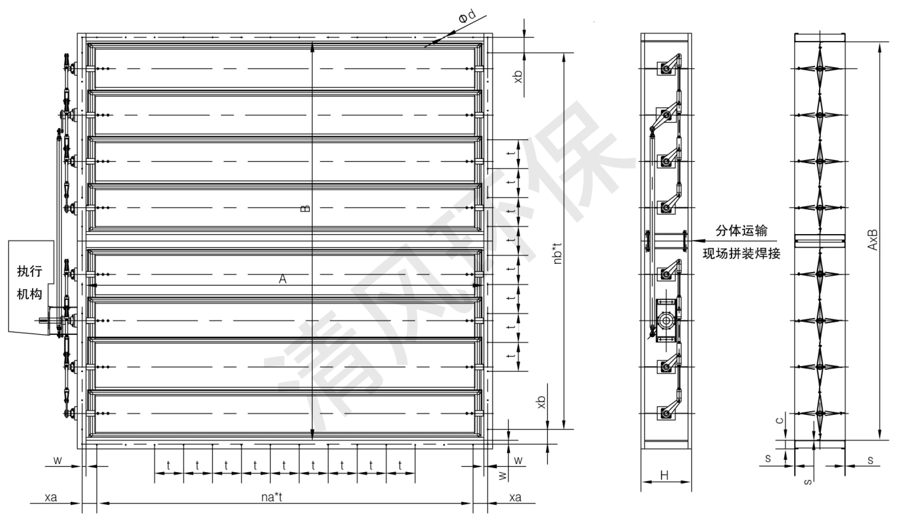 1、煙氣脫硫擋板門圖示尺寸W和L是指擋板框架的內(nèi)邊尺寸,W是與擋板垂直方向的尺寸。訂貨時請?zhí)峁煹澜孛娉叽纭醢彘T在管道布置中應(yīng)保持擋板軸在水平位置。水平布置矩形煙道高度和寬度尺寸,請分別列出。