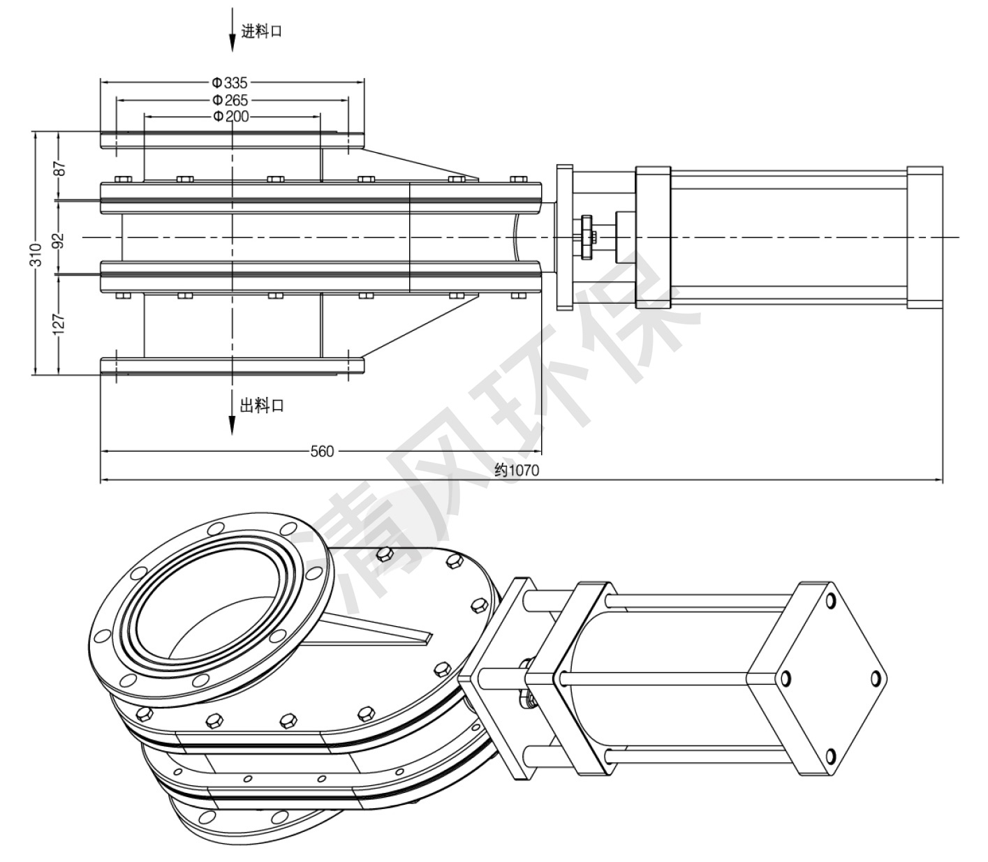 雙閘板式氣動進料閥采用美國愛爾拉丁公司先進技術(shù)所開發(fā)研制,該閥門專門用于火電廠氣力除灰系統(tǒng)所含倉泵進料啟閉。該閥主要部件如:閥板閥芯均采用耐磨陶瓷或鎢合金密封,故其磨損性能較其他同類型閥門更為出色,經(jīng)實踐證明,該閥的結(jié)構(gòu)嚴密,啟閉性好,具有耐壓,耐磨,耐沖擊的特點,大大提高了系統(tǒng)運行的可靠性,穩(wěn)定性。